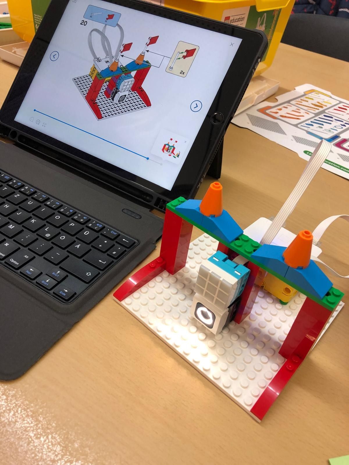 In verschiedenen Projektgruppen knobelten, bauten, zeichneten und gestalteten die Kinder rund um Formen, Muster, Würfelgebäude, Wahrscheinlichkeiten und geometrische Kunstwerke. Viele Angebote knüpften dabei direkt an Inhalte aus dem Geometrie- und Mathematikunterricht an. Ob beim Konstruieren mit Holzklötzen, beim Arbeiten mit LEGO Education, beim digitalen Knobeln am Tablet oder bei bewegungsreichen Aufgaben in der Sporthalle – überall wurde konzentriert gerechnet, probiert und gelacht.